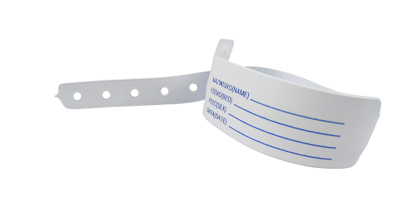 Das Baby-Identifikationsband ist aus einem weichen Material gefertigt, das keine Allergien oder Hautausschläge verursacht. Es wird mit einem Druckknopf verschlossen. Mit 4 Feldern zum Ausfüllen (Name, Bett, Geschlecht, Datum).