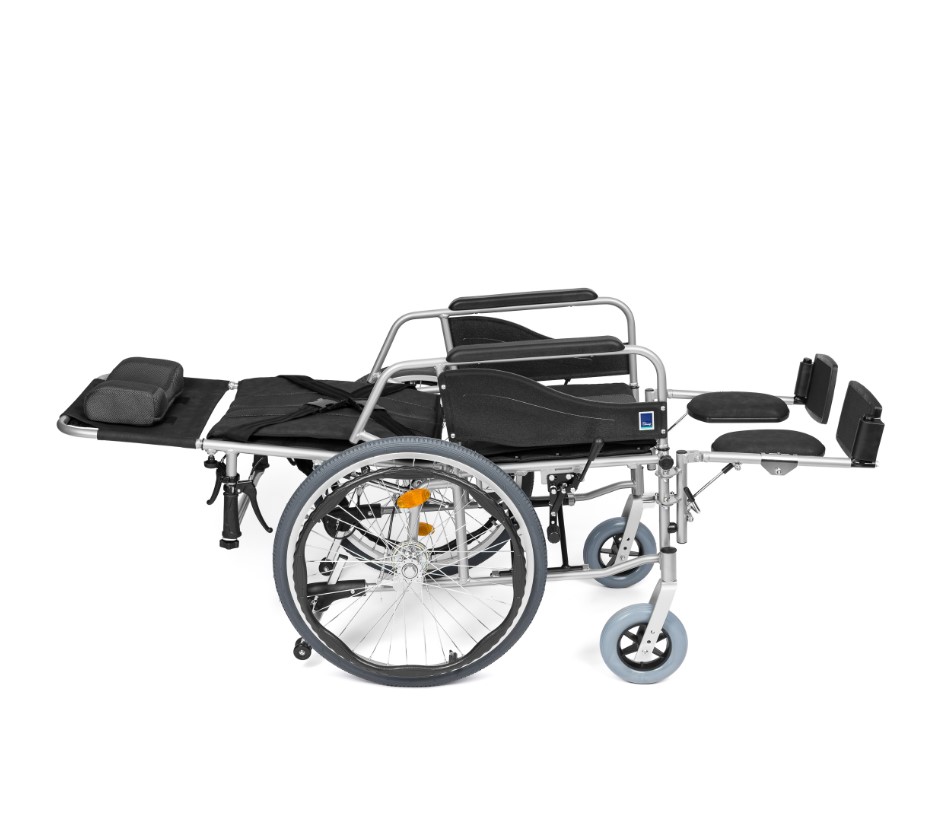 EINSTELLBAR – Der Rollstuhl verfügt über eine verlängerte Rückenlehne mit einem einstellbaren Winkel von 0° bis 90°, die es dem Patienten ermöglicht, in einer liegenden oder halb liegenden Position zu bleiben, was das Ausruhen, die Pflege und die Entlastung der Muskeln erleichtert.