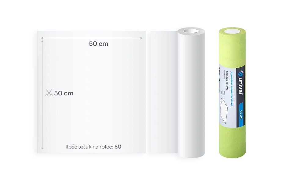 Univel Plus Einweg-Schutzauflagen sind dreilagig (Tissue, Löschpapier, Folie). Die Oberseite besteht aus zweilagigem hygienischem Tissue-Papier (100% Zellulose), auf der Unterseite befindet sich eine starke Schicht aus Polyethylenfolie. Diese Kombination macht die Unterlage wasserdicht und rutschfest. Univel Plus-Unterlagen sind weich, leicht, funktionell und vielseitig. Sie sind wasserdicht und haben eine hohe Reißfestigkeit.